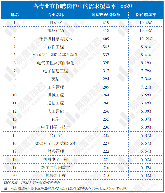 广东省统计局每年也同步发布各行业财政拨贷款资金来历次要目标增加速度。若是我们聚焦于消息传输、软件和消息手艺办事业,2023年国度预算资金增加速度为-0。8%,而2024年暴增至120。7%,位列全行业第一。强烈表白通过间接投资、补助、采购等体例强力鞭策数字经济成长。即便市场贷款增速平稳,其本身的高利润和薪酬高增加已证明其焦点地位。这是政策意志、本钱承认的双沉确认。基于国度大学生就业办事平台截至1月5日的聘请数据,我们进一步验证前述宏不雅趋向能否已切实为用人单元对高校结业生的具体、岗亭笼盖率即某一专业所能婚配的岗亭数量占全数有明白专业要求岗亭总量(仅统计本科学历)的比例。岗亭笼盖率前十名中,工科专业占领六席。Top20专业大致能够分为四个集群:数字经济取消息手艺集群、智能制制取从动化集群、现代商科取办理集群以及根本学科取通用技术。此中数字经济取消息手艺集群涵盖计较机科学取手艺、软件工程、电子消息工程等8个专业,数量最多。从互联网公司到制制工场,从金融机构到零售企业,都正在招募数字化人才;智能制制取从动化集群笼盖了从动化、机械设想制制及其从动化、电气工程及其从动化等5个焦点专业。此中,从动化专业位列需求榜首,这一现象清晰印证了广东省制制业当家取智能制制升级的计谋导向并非逗留正在政策标语层面,而是曾经切实为对相关范畴结业生最普遍、最根本且规模化的岗亭需求。