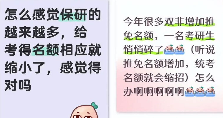 可是需要留意的是,比来几年,双一流高校的保研率一曲正在上升,特别是985和211高校的理工科,保研率更是高得离谱。良多985都书面达到了40%以上的保研率,若是正在解除掉间接就业和出国深制的,保研率达到70%+的也有不少。如许的话,传授的资本是无限的,实正拿到考研市场上的名额并不多,并且大大都是不太好的专业组,喜好PUA的老板并不少。这对那些想考985、211高校的同窗而言,无疑晦气。