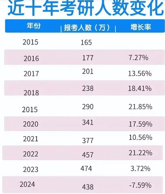 和客岁388万比拟,间接削减了45万人;跟最颠峰2023年的474万比起来,更是少了整整120万人,曾经跌了四分之一。根基上能够和2020年考研人数是341万持平了。考研人数跌回了6年前,生怕良多人想不到会俄然发生变化。